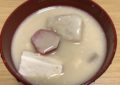 - 煮えた餅をお椀に入れ、餅を隠すように具沢山に汁を盛って完成です。