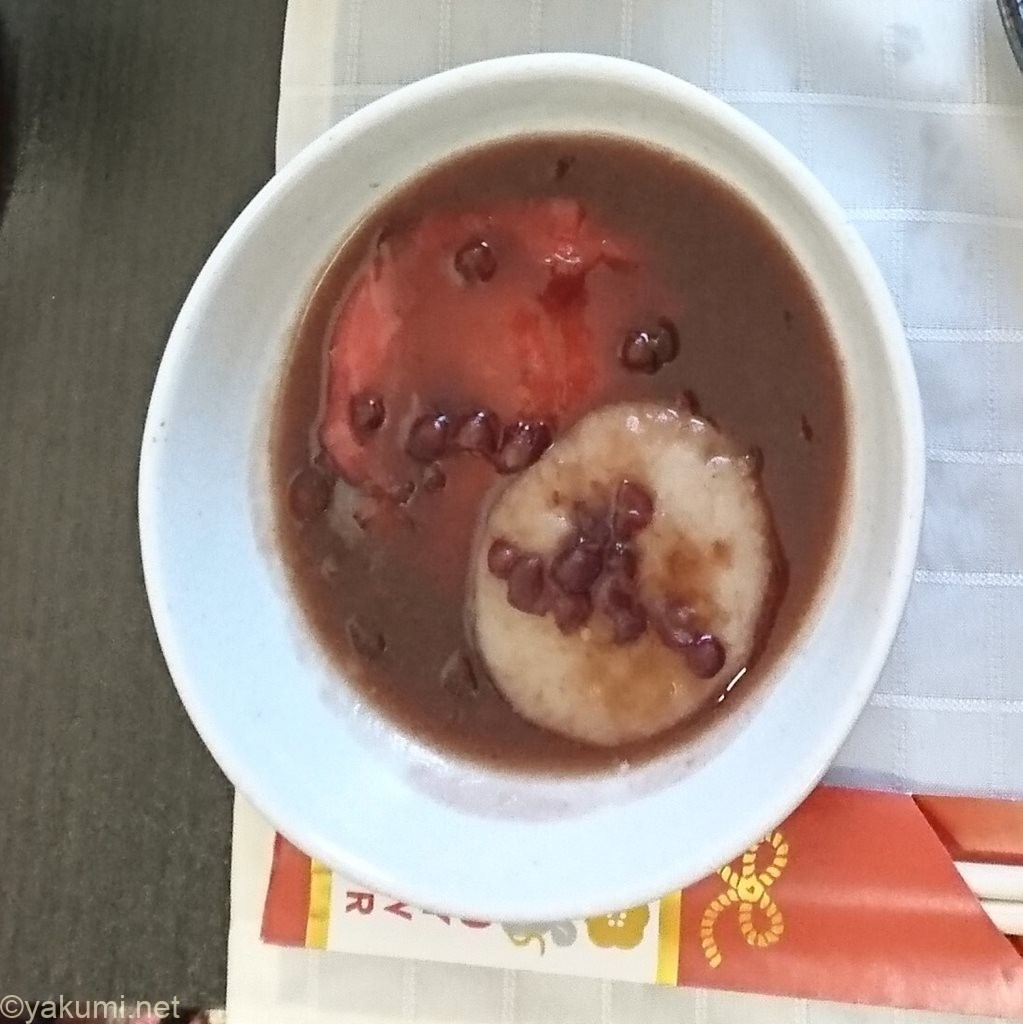 小豆、砂糖、ほうれん草、かまぼこ、しいたけ、人参、小松菜、みつば - 【ぜんざい】