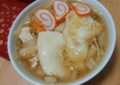 - そこに茹でた大根と小さく切った白菜と輪切りにしたちくわを入れて煮込んでいきます。今年は、材料がたまたまあまりなかったので具材が少なくて寂しい感じですが、例年はもう少したくさんの種類の具材料が入ります。茹でたニンジン、茹でたゴボウ、ひらてん、油揚げ、鶏もも肉などを入れると、彩りや味わいがより奥深いものになります。