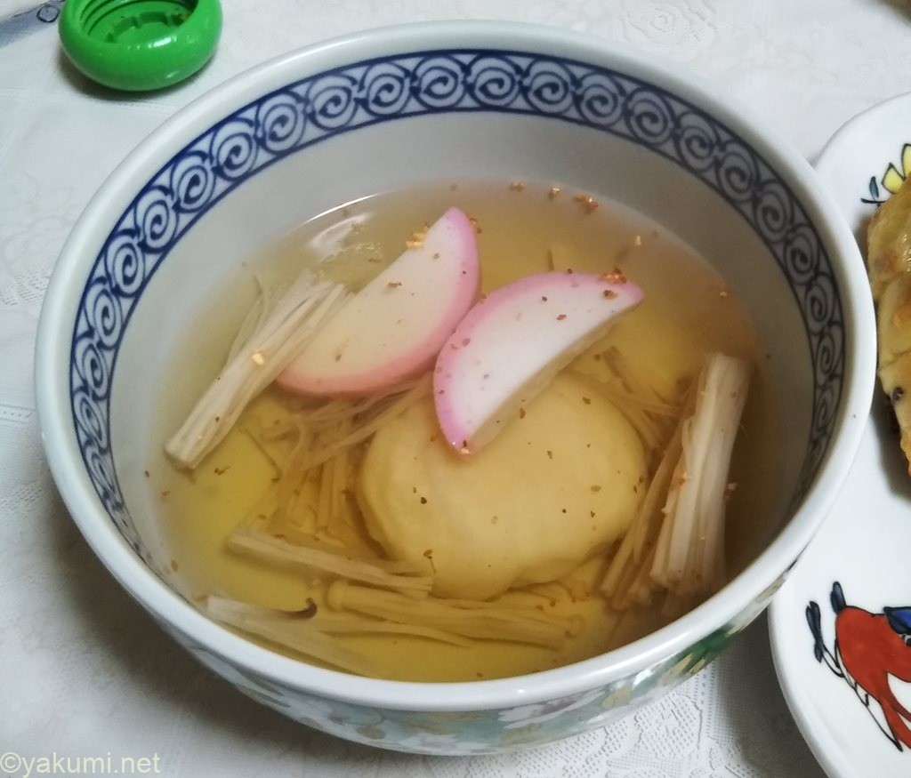 - 具材はシンプルにお餅、かまぼこ、エノキだけです。かまぼこ・エノキは一口サイズにカットします。